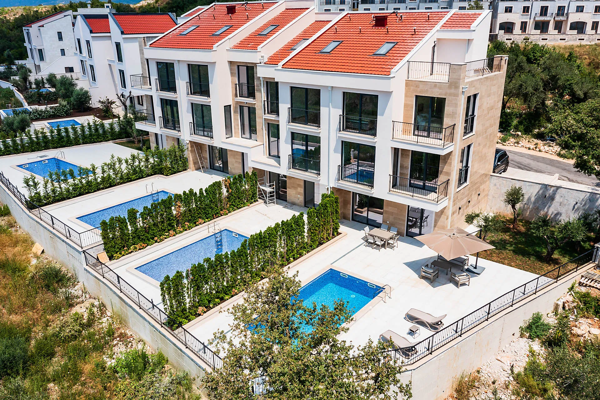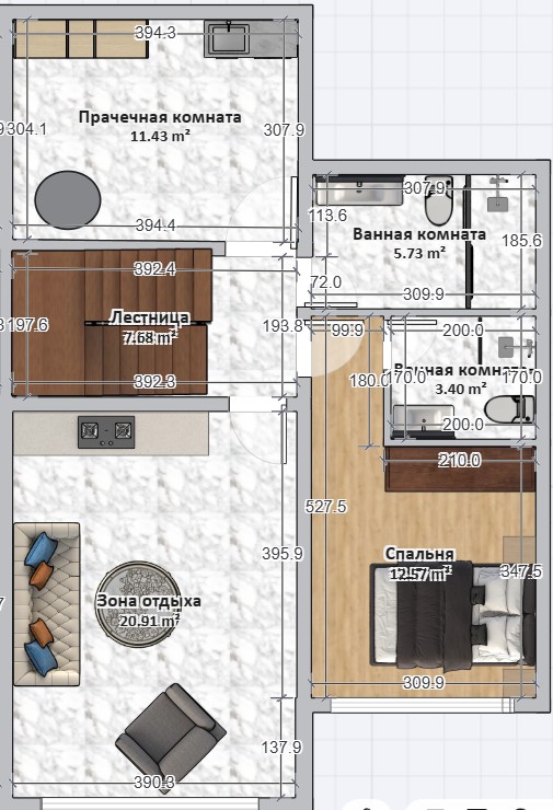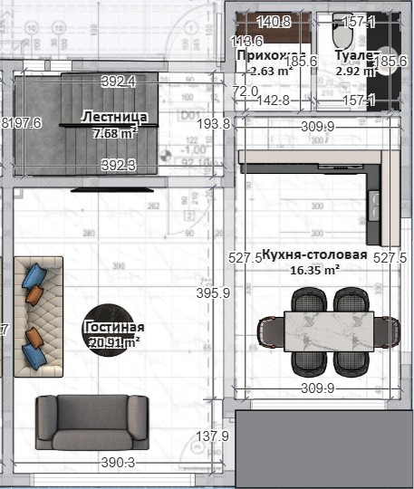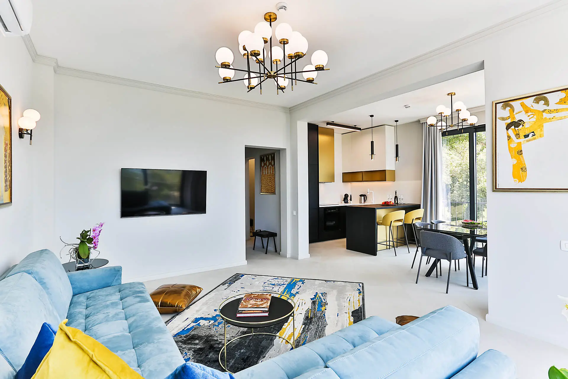 - Высококачественная отделка и комплектация: натуральный непористый камень толщиной 30 мм, керамика премиум-класса, натуральный дубовый паркет, бытовая техника и стильная мебель