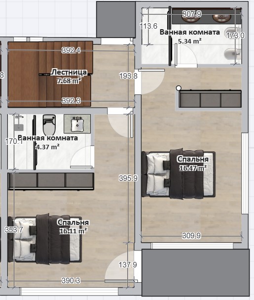 - 3 просторные спальни, каждая с собственной ванной комнатой
