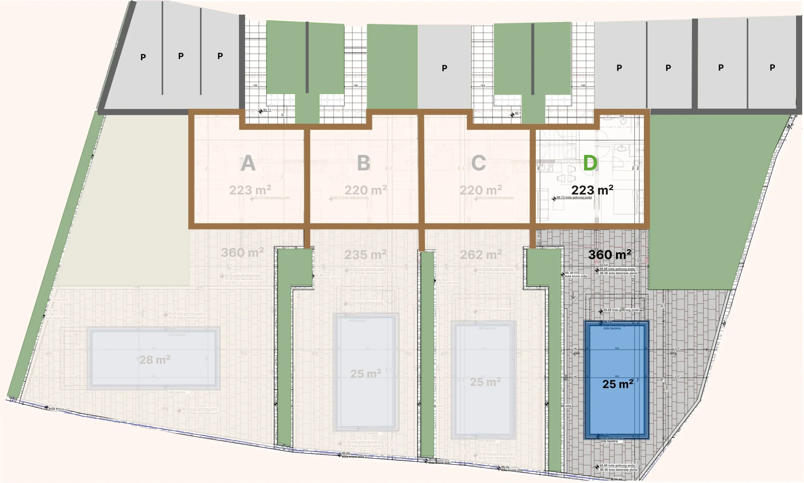- Собственный бассейн и ландшафтный сад с оливковыми деревьями